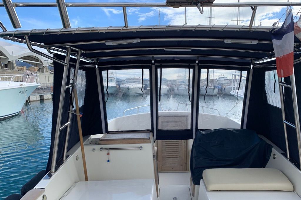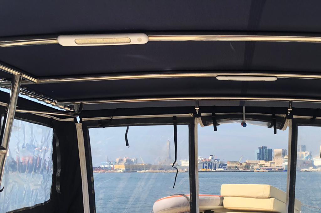 Motori installati nel 2009 , ore di moto 400 , consumo 35l/h totali a 22 nodi. Timoneria nuova . Manette morse nuove. Cuscinerie a cellule chiuse. Frigo Isotherm deluxe in inox . Attacco corrente inox. Impianto elettrico nuovo , caricabatterie nuovi. T-Top inox con luci notturne. Fanale di via elettrico con joistick. Verricello con ancora inox d. Wc. Cabina di prua .