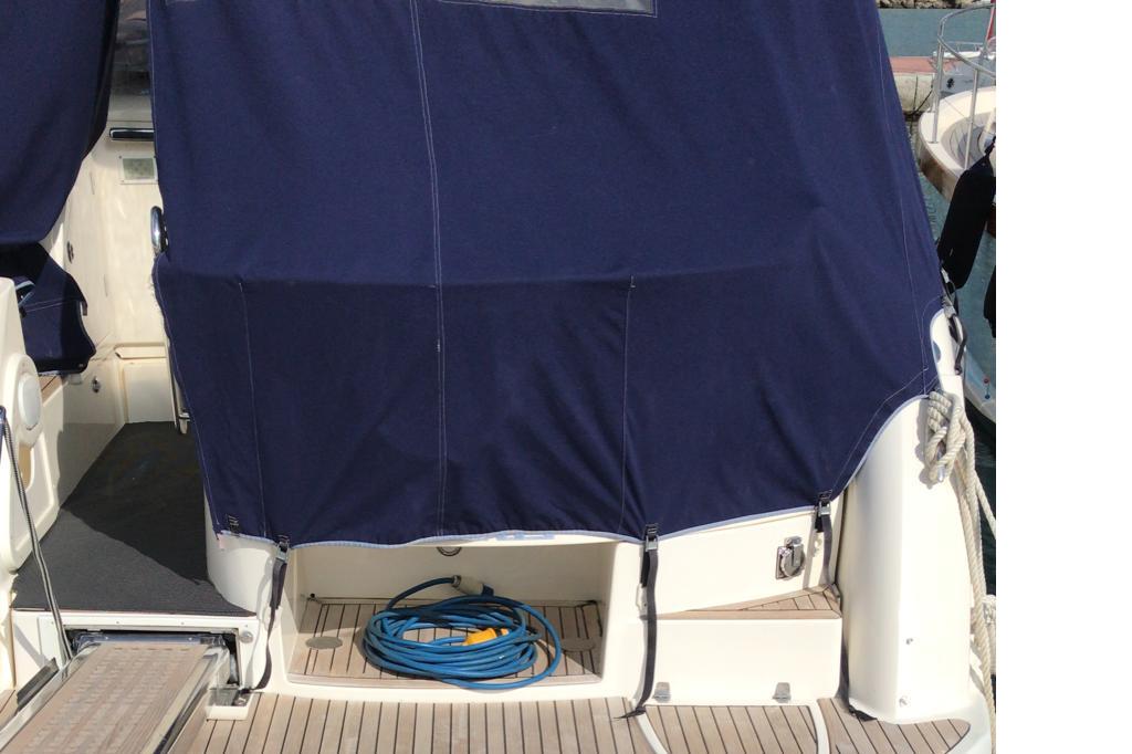 ELICA DI PRUA , SALPANCORE ELETTRICO CON ANCORA E CATENA , CUSCINERIE ESTERNE , PLANCETTA IN TEAK , TENDALINI PARASOLE , PASSERELLA IDRAULICA .